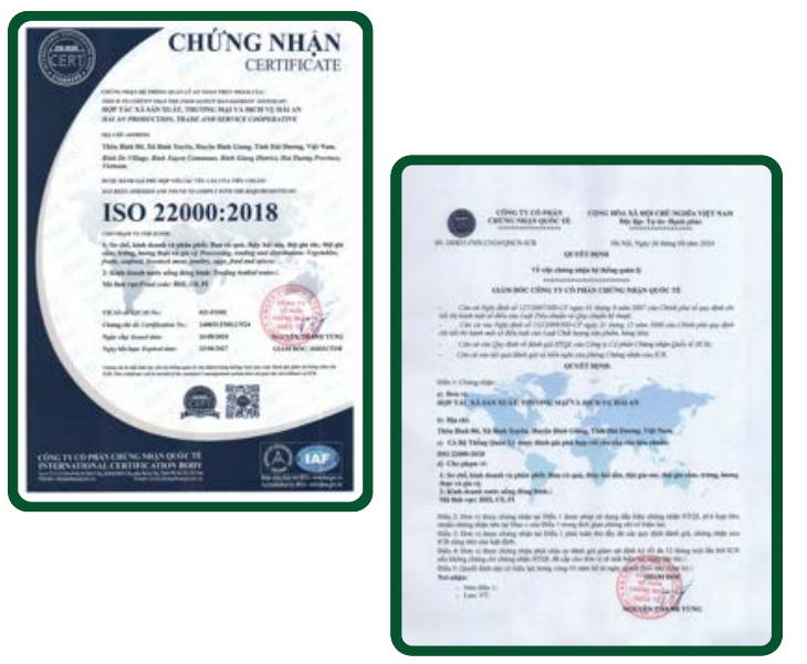 Chứng nhận này không chỉ khẳng định sản phẩm của chúng tôi đạt chuẩn quốc tế, mà còn là bằng chứng cho cam kết bền vững của Công ty TNHH Thực phẩm HC Dinh dưỡng xanh Việt Nam trong việc mang đến thực phẩm sạch – an toàn – chất lượng cao.